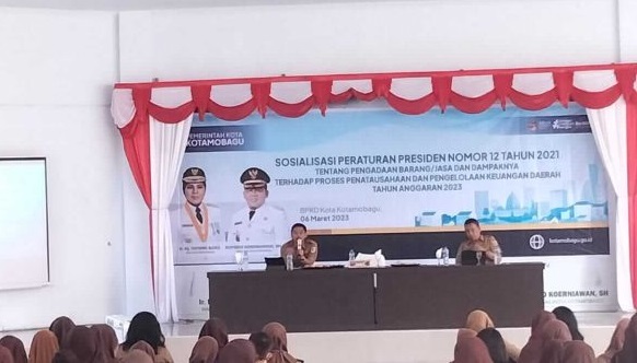 mediatotabuan.co, Kotamobagu – Pemerintah Kota (Pemkot) Kotamobagu, menggelar sosialisasi Peraturan Presiden (Perpers) RI Nomor 12 Tahun 2021, dan dibuka Sekretaris Daerah (Sekda) Kotamobagu, Sofyan Mokoginta SH, di Aula Kantor Wali Kota Kotamobagu, Senin (06/03/2023).