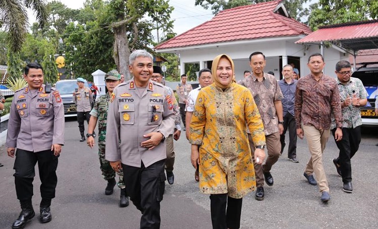 Wali Kota Ir Hj Tatong Bara, saat menyambut kedatangan Irjen Pol Drs Setyo Budiyanto, mengucapkan selamat datang di Kota Kotamobagu.