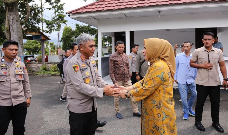 Wali Kota Ir Hj Tatong Bara, saat menyambut kedatangan Irjen Pol Drs Setyo Budiyanto, mengucapkan selamat datang di Kota Kotamobagu.