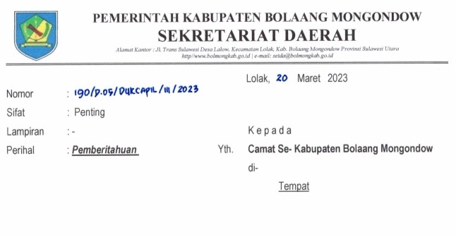 Surat himbauan bernomor: 189/D-05/Dukcapil/ III/2023 dan Nomor: 190/D-05/Dukcapil/III/2023 ini, ditujukan kepada para camat dan seluruh stakeholder di Kabupaten Bolmong.