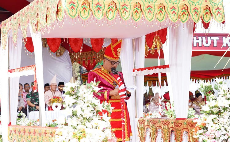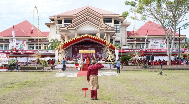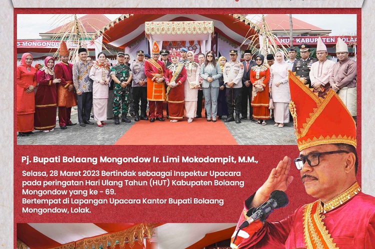 Ageda yang dilaksanakan di halaman kantor Sekretariat Daerah (Setda) Bolmong ini, bertindak sebagai Inspektur Upacara (Irup) yakni Pejabat (Pj) Bupati Bolmong, Ir Limi Mokodompit MM, yang baru saja menyandang gelar Adat Bolmong “Bogani Ki Limi”.