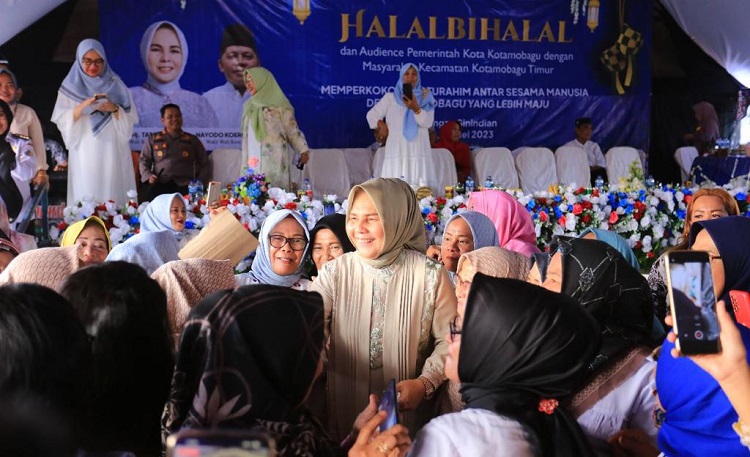 Halal Bihalal yang dilaksanakan di Lapangan Olahraga Kelurahan Sinindian, Kecamatan Kotamobagu Timur tersebut, dihadiri Wakil Wali Kota Kotamobagu Nayodo Koerniawan SH, Kapolres Kotamobagu AKBP Dasveri Abdi SIK, Forkopimda, Anggota DPRD Kotamobagu diantaranya Anugerah Begie Chandra Gobel, Yunita Lontoh, Feiba Tumundo, Suryadi Baso.