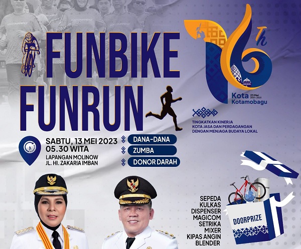 Fun Bike dan Fun Run yang dipusatkan di Lapangan Olahraga Kelurahan Molinow, Kecamatan Kotamobagu Barat ini, terbuka untuk umum dan juga dirangkaikan dengan Bakti Sosial (Baksos).