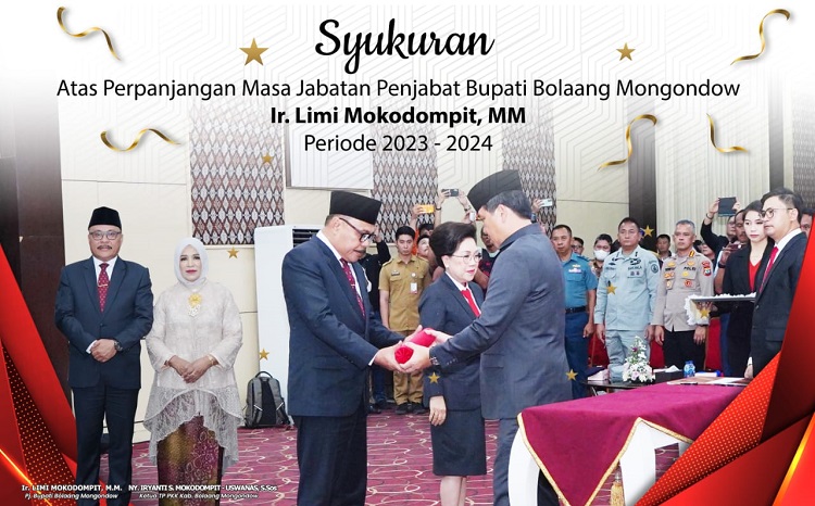 Sebelumnya, pasa Selasa (23/05/2023), Gubernur Sulut, Olly Dondokambey SE melalui Wakil Gubernur Drs Steven Kandow, menyerahkan SK dari Mendagri Nomor:100.2.1.3-1197 Tahun 2023 tentang Perpanjangan Pj Bupati Bolaang Mongondow periode 2023-2024, kepada Ir Limi Mokodompit MM, bertempat di Aula Gubernuran CJ Rantung.