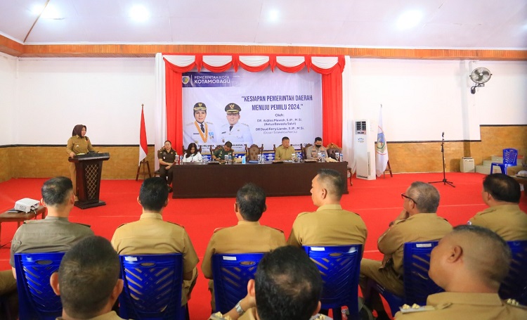 mediatotabuan.co, Kotamobagu – Wali Kota Kotamobagu, Ir Hj Tatong Bara dan Wakil Wali Kota Nayodo Koerniawan SH (TB-NK), menghadiri sosialisasi Kesiapan Pemerintah Daerah (Pemda) Menuju Pemilihan Umum (Pemilu) Tahun 2024, Senin (05/06/2023).