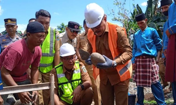 Peletakan batu pertama ini merupakan bagian dari program pembangunan dan rehabilitasi atau relokasi rumah korban bencana Tahun 2023 oleh Dinas Perumahan dan Kawasan Permukiman (Perkim) Bolmong.