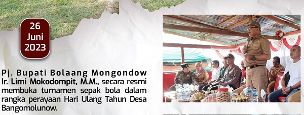 Pembukaan tournamen sepak bola ini, dihadiri Ketua PSSI Bolmong yang juga anggota DPRD Bolmong Febrianto Tangahu, Asisten III Ashari Sugeha, Kepala Dispora Bolmong Aldy Pudul, Kepala Diknas Bolmong Renti Mokoginta, Camat Bolaang Hari Damopolii, Sangadi Desa Bangomolunow Rahmatia Mokodongan, serta unsur Forkopimcam, pengawas pertandinga dari PSSI Sulut, tamu dan undagan.