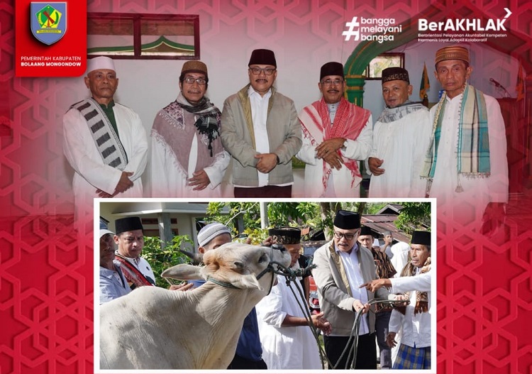 Pada kesempatan tersebut, Pj Bupati Bolmong, Ir Limi Mokodompit MM, mengajak masyarakat dimomentum Idul Adha ini, untuk berkorban dijalan Allah SWT dan berkorban untuk pembangunan daerah sebagaimana keikhlasan Nabi Ibrahim.