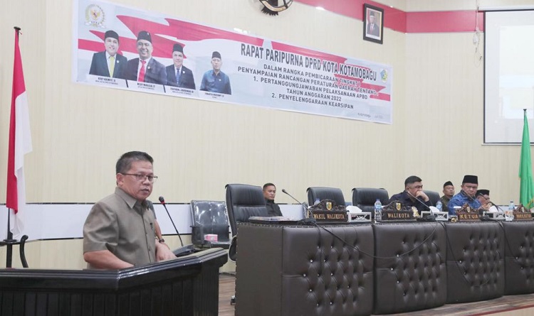 Rapat paripurna yang dilaksanakan di Gedung DPRD Kota Kotamobagu tersebut, dihadiri Ketua DPRD Kota Kotamobagu, Meiddy Makalalag, S.T., Wakil Ketua DPRD Kota Kotamobagu, Herdy Korompot, S.E., Wakil Ketua DPRD Kota Kotamobagu, Syarifuddin. J. Mokodongan, S.H., perwakilan Forkopimda, para anggota DPRD Kota Kotamobagu, para Asisten, pimpinan Organisasi Perangkat Daerah serta Camat, Lurah dan Sangadi se-Kota Kotamobagu.