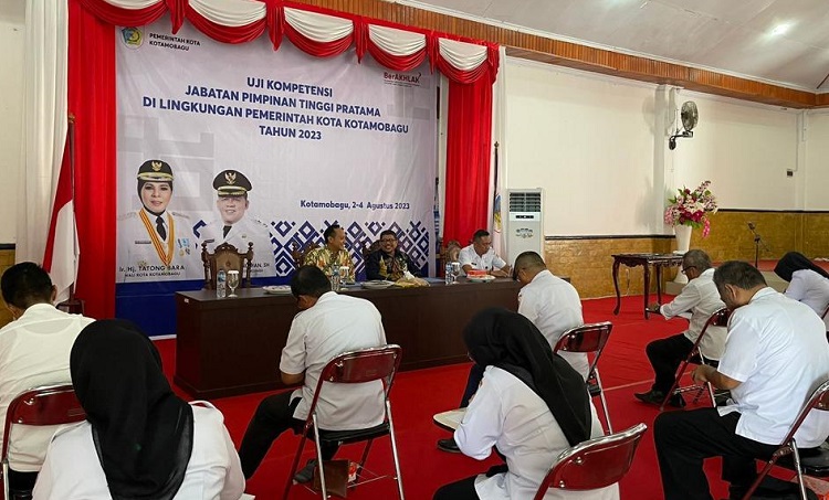 mediatotabuan.co, Kotamobagu – Pemerintah Kota (Pemkot) Kotamobagu, dipimpin Wali Kota kotamobagu Ir Hj Tatong Bara dan Wakil Wali Kota Nayodo Koerniawan SH, mulai melaksanakan Tahapan Uji Kompetensi Pejabat Pimpinan Tinggi Pratama, Rabu (02/08/2023).
