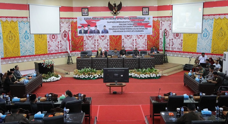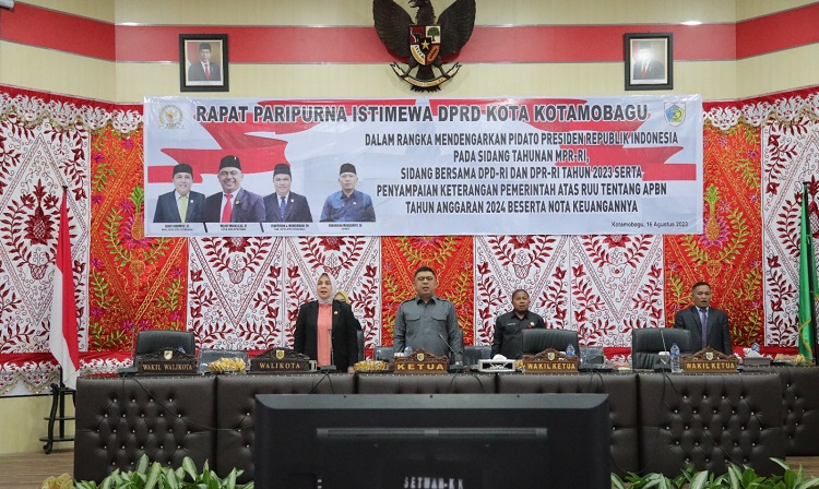 mediatotabuan.co, Kotamobagu – Dewan Perwakilan Rakyat Daerah (DPRD) Kota Kotamobagu, menggelar Rapat Paripurna Istimewa Dalam Rangka Mendengarkan Pidato Presiden Republik Indonesia pada Sidang Tahunan MPR-RI, Sidang bersama DPD-RI dan DPR-RI Tahun 2023 serta Penyampaian Keterangan Pemerintah atas RUU tentang APBN Tahun Anggaran 2024 beserta Nota Keuangannya, Rabu (16/08/2023).