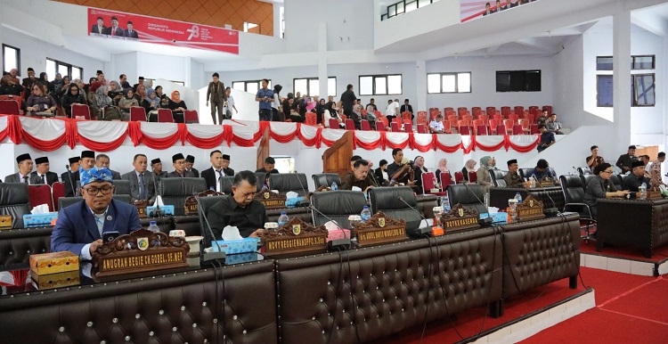 Rapat tersebut, dipimpin Ketua DPRD Kota Kotamobagu Meiddy Makalalag tersebut, dihadiri Wali Kota Kotamobagu, Ir Hj Tatong Bara bersama Wakil Wali Kota Kotamobagu, Nayodo Koerniawan SH.
