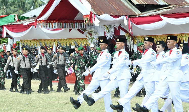 Dalam suasana yang penuh semangat dan patriotisme, upacara dimulai pukul 09.00 Wita diawali dengan pembacaan teks proklamasi oleh Wakil Ketua DPRD Boltim.