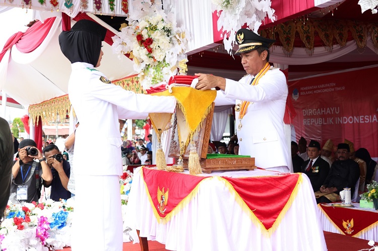 MEDIATOTABUAN, BOLTIM – Detik-detik Proklamasi HUT RI ke-78, di Kabupaten Bolaang Mongondow Timur (Boltim), juga dirangkai dengan penyerahan tanda kehormatan kepada sejumlah ASN.