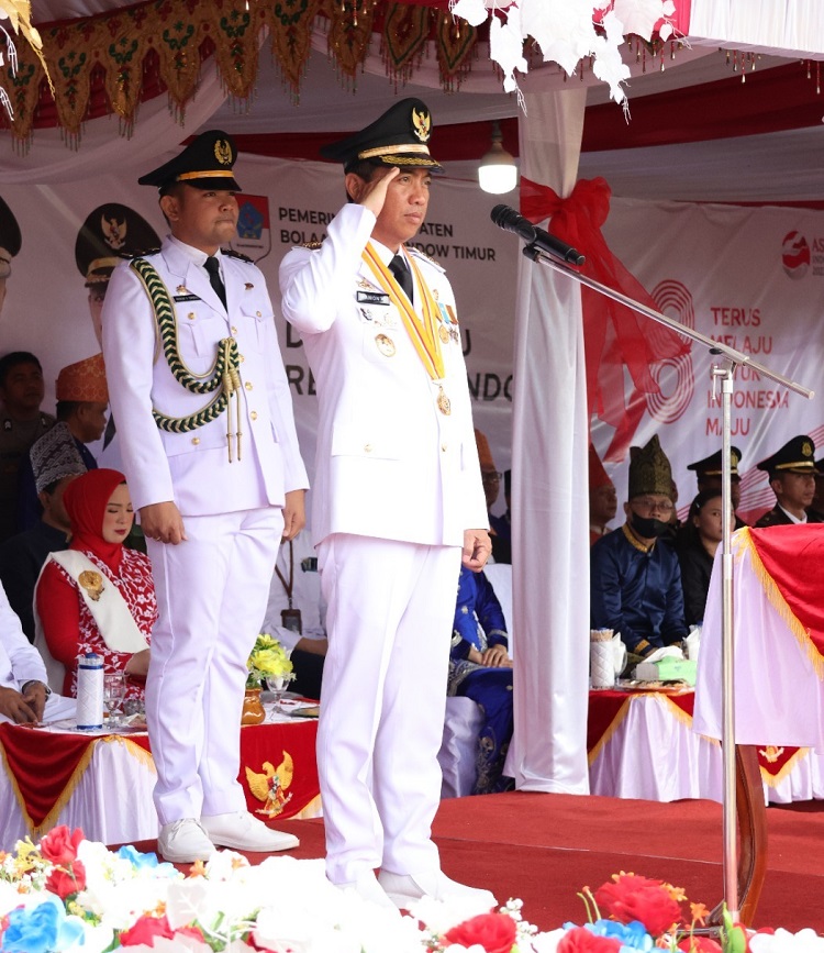 Bupati Boltim Sam Sachrul Mamonto (SSM), menjadi inspektur upacara, yang digelar di lapangan Gogaluman Desa Tutuyan, Kamis (17/8/2023).