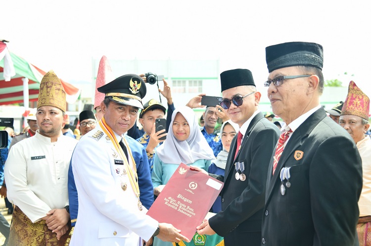 Usai upacara, bupati menyerahkan tanda kehormatan penghargaan dan Satyalancana Karya kepada kepala Kemenag Boltim dan sejumlah ASN yang masa pengabdianya sudah 30 tahun.