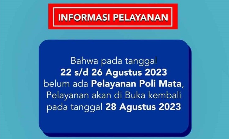 Pasalnya, pelayana Poli Mata di rumah sakit kebanggaan masyarkat Kota Kotamobagu dan sekitarnya tersebut, masih ditutup atau belum ada pelayanan sejak tanggal 22 hingga 26 Agustus 2023.