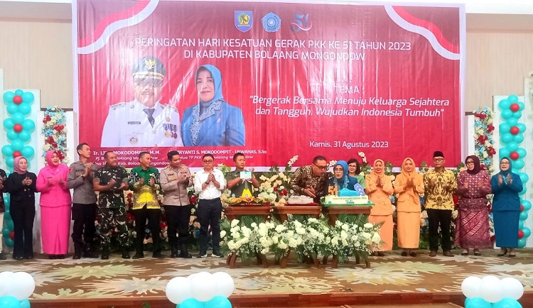 mediatotabuan.co, Bolmong – Pejabat (Pj) Bupati Kabupaten Bolaang Mongondow (Bolmong), Ir Limi Mokodompit MM, menghadiri sekaligus mengapresiasi Hari Kesatuan Gerak (HKG) Pemberdayaan Kesejahteraan Keluarga (PKK) Ke-51 Tahun 2023, Kamis (31/08/2023).