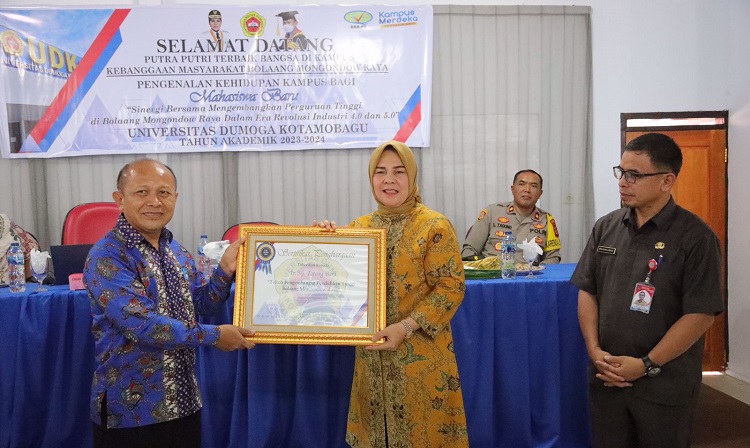 mediatotabuan.co, Kotamobagu – Universitas Dumoga Kotamobagu (UDK), memberikan penghargaan kepada Wali Kota Kotamobagu, Ir Hj Tatong Bara, sebagai Tokoh Pengembangan Pendidikan Tinggi di Bolaang Mongondow Raya (BMR), Selasa (05/09/2023).