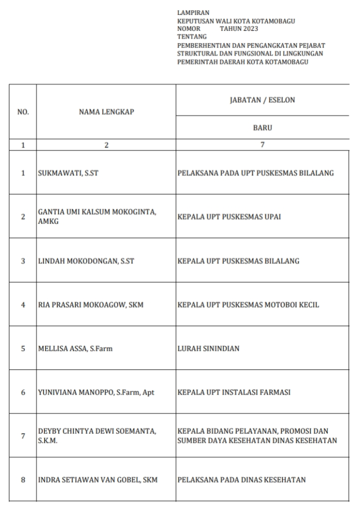 mediatotabuan.co, Kotamobagu – Wali Kota Kotamobagu, Ir Hj Tatong Bara, melantik sebanyak 51 pejabat di jajaran Pemeritah Kota (Pemkot) Kotamobagu di Aula Rumah Jabatan (Rujab) Wali Kota Kotamobagu, Jumat (08/09/2023).