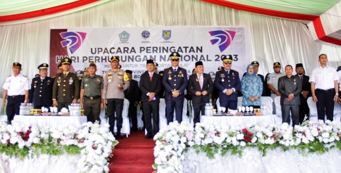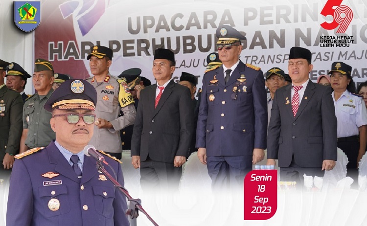 mediatotabuan.co, Bolmong – Pelaksanaan upacara dalam rangka Hari Perhubungan Nasional (Harhubnas) Ke-53 Tahun 2023 tingkat Provinsi Sulawesi Utara (Sulut), dipusatkan di Kabupaten Bolaang Mongondow (Bolmong), Senin (18/09/2023).