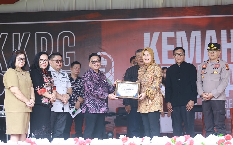 Penyerahan piagam yang diserahkan Ketua BPS GMIBM, Pendeta Fekky. W. Kamasaan MTh, dan diterima langsung Wali Kota Kotamobagu, Ir Hj Tatong Bara, pada pelaksanaan pembukaan Kemah Kerja Pemuda GMIBM Tahun 2023, di Stadion Gelora Ambang Kotamobagu.