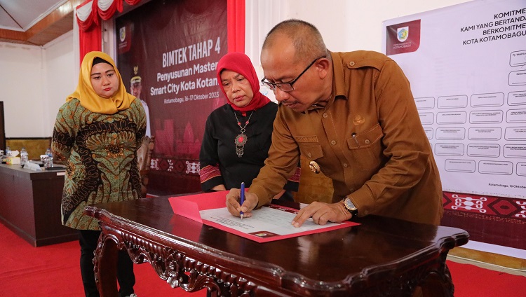 Pada kesempatan tersebut juga dilaksanakan kegiatan Penandatanganan Komitmen bersama terkait dukungan implementasi Smart City di Kota Kotamobagu oleh Pj. Wali Kota Kotamobagu Hi Asripan Nani, dengan seluruh kepala Organisasi Perangkat Daerah (OPD) dan para Camat di wilayah Kota Kotamobagu.