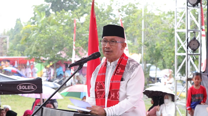 “Saya salut ditengah-tengah keterbatasan ditengah cuaca yang seperti ini ibu-ibu langkah kaki ringan dengan tekad yang membara hadir dalam acara yang luar biasa ini,” tambahnya ditengah-tengah hujan yang menguyur.