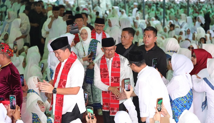 “Saya salut ditengah-tengah keterbatasan ditengah cuaca yang seperti ini ibu-ibu langkah kaki ringan dengan tekad yang membara hadir dalam acara yang luar biasa ini,” tambahnya ditengah-tengah hujan yang menguyur.