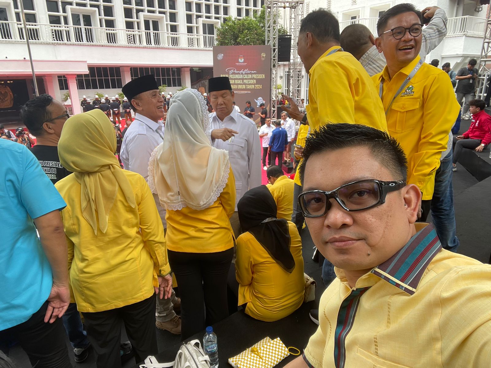 mediatotabuan.co, Jakarta – Aditya Anugrah Moha (ADM) turut mengantar pendaftaran pasangan bakal calon Presiden dan Wakil Presiden, Prabowo Subianto- Gibran Rakabuming, di Kantor KPU RI, Rabu (25/10/2023).