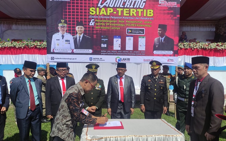 mediatotabuan.co, Kotamobagu – Penjabat (Pj) Wali Kota Kotamobagu, Dr Drs Hi Asripan Nani MSi, melaunching Aplikasi Sistem Informasi Pelaporan Ketertiban dan Kebakaran (SIAP TERTIB), Jumat (10/11/2023).