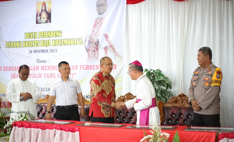 mediatotabuan.co, Kotamobagu – Penjabat (Pj) Wali Kota Kotamobagu, Dr Drs Hi Asripan Nani MSi, menghadiri kegiatan dalam rangka mensyukuri Pesta Pelindung Paroki Kristus Raja Kotamobagu, Minggu (26/11/2023).