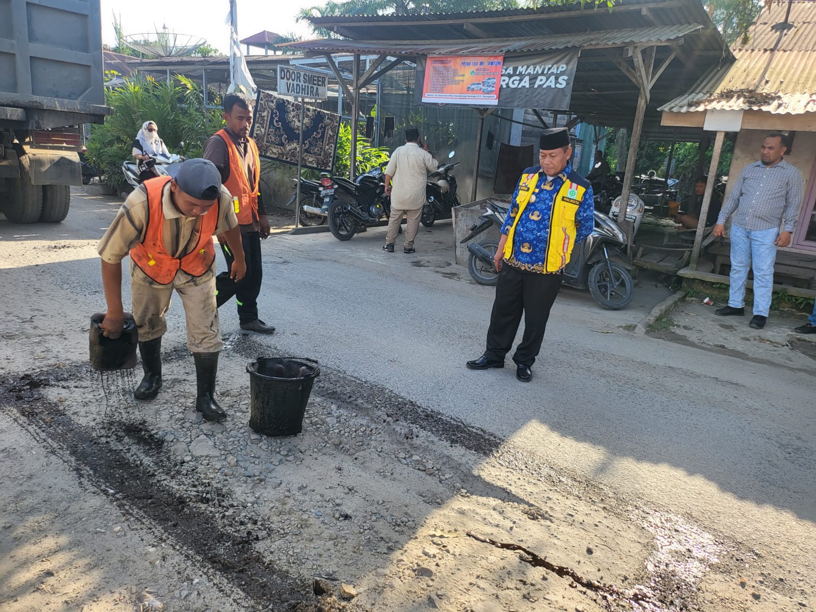 MEDIATOTABUAN, TANJUNGBALAI (SUMUT) – Wali Kota Tanjungbalai H Waris Tholib tinjau perbaikan pemeliharaan jalan hotmix di lapisan base pada konstruksi si Jalan Saidi Muli, Jalan Utama, Jalan A Sani Sitorus Pulau Simardan, Rabu (29/11/2023).