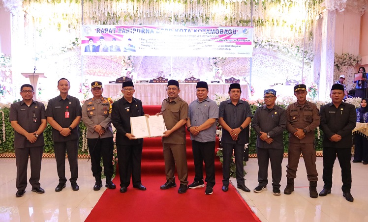 Pj Wali Kota Kotamobagu, Hi Asripan Nani, dalam sambutannya memberikan apresiasi kepada seluruh pimpinan dan anggota DPRD Kotamobagu yang telah berkerja keras siang malam membahas dan menyusun draf ketiga Ranperda tersebut menjadi Perda.