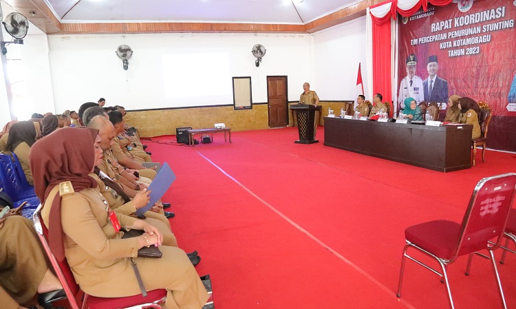 mediatotabuan.co, Kotamobagu – Penjabat (Pj) Wali Kota Kotamobagu, Dr Drs Hi Asripan Nani MSi, membuka Rapat Koordinasi (Rakor) Tim Percepatan Penanggulangan Stunting Kota Kotamobagu Tahun 2023, Senin (18/12/2023).