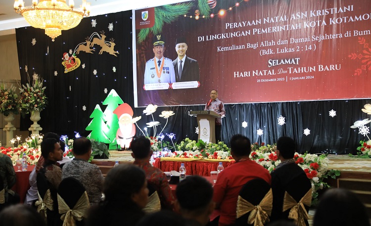 mediatotabuan.co, Kotamobagu – Para Aparatur Sipil Negara (ASN) dan Tenaga Harian Lepas (THL) yang beragama Kristiani di jajaran Pemerintah Kota (Pemkot) Kotamobagu, menyelenggarakan Perayaan Natal, Rabu (20/12/2023).