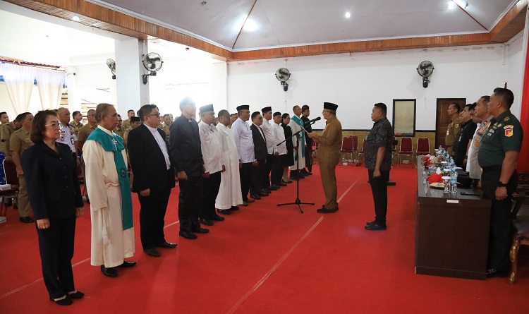 mediatotabuan.co, Kotamobagu – Penjabat (Pj) Wali Kota Kotamobagu, Dr Drs Hi Asripan Nani MSi, mengukuhkan pengurus Forum Kerukunan Umat Beragama (FKUB) Kota Kotamobagu Masa Bakti 2024 – 2028, Senin (22/01/2024).