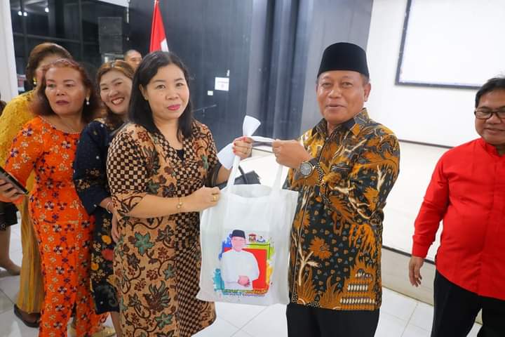 Wali Kota H Waris Tholib, memberikan bingkisan kepada seluruh pengurus, penggiat Gereja dan umat Kristiani, se Tanjungbalai.