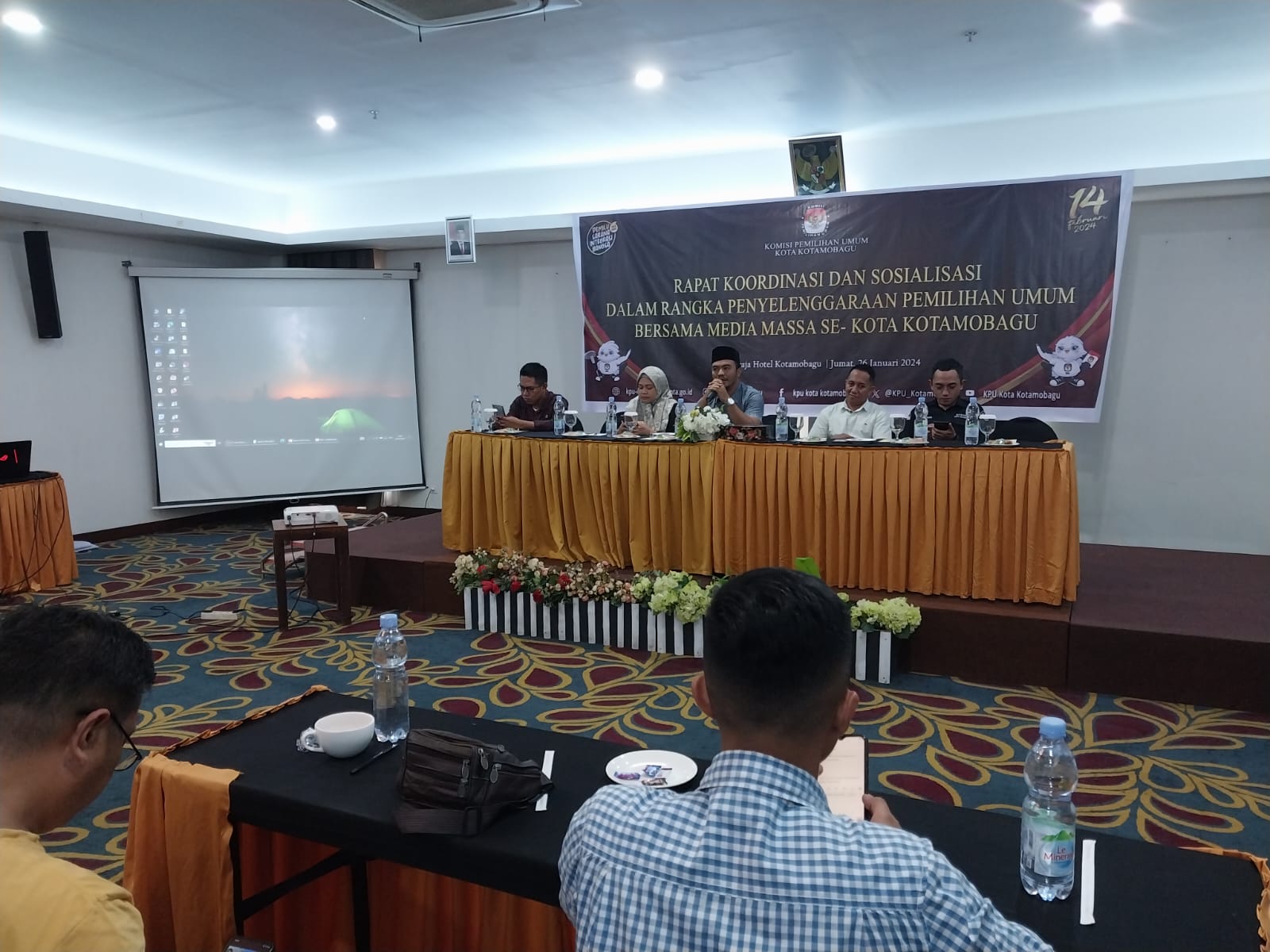 mediatotabuna.co, Kotamobagu – Komisi Pemilihan Umum (KPU) Kota Kotamobagu, menggelar Rapat Koordinasi (Rakor) dan Sosialisasi dalam Rangka Penyelenggaraan Pemilu bersama Media Massa se-Kota Kotamobagu, Jumat (26/01/2024).