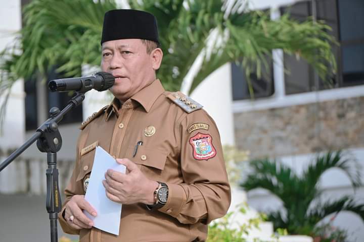 Waris Tholib, bertindak langsung menjadi pembina apel di Lapangan Kantor Wali Kota Tanjungbalai, Senin (30/1/2024).