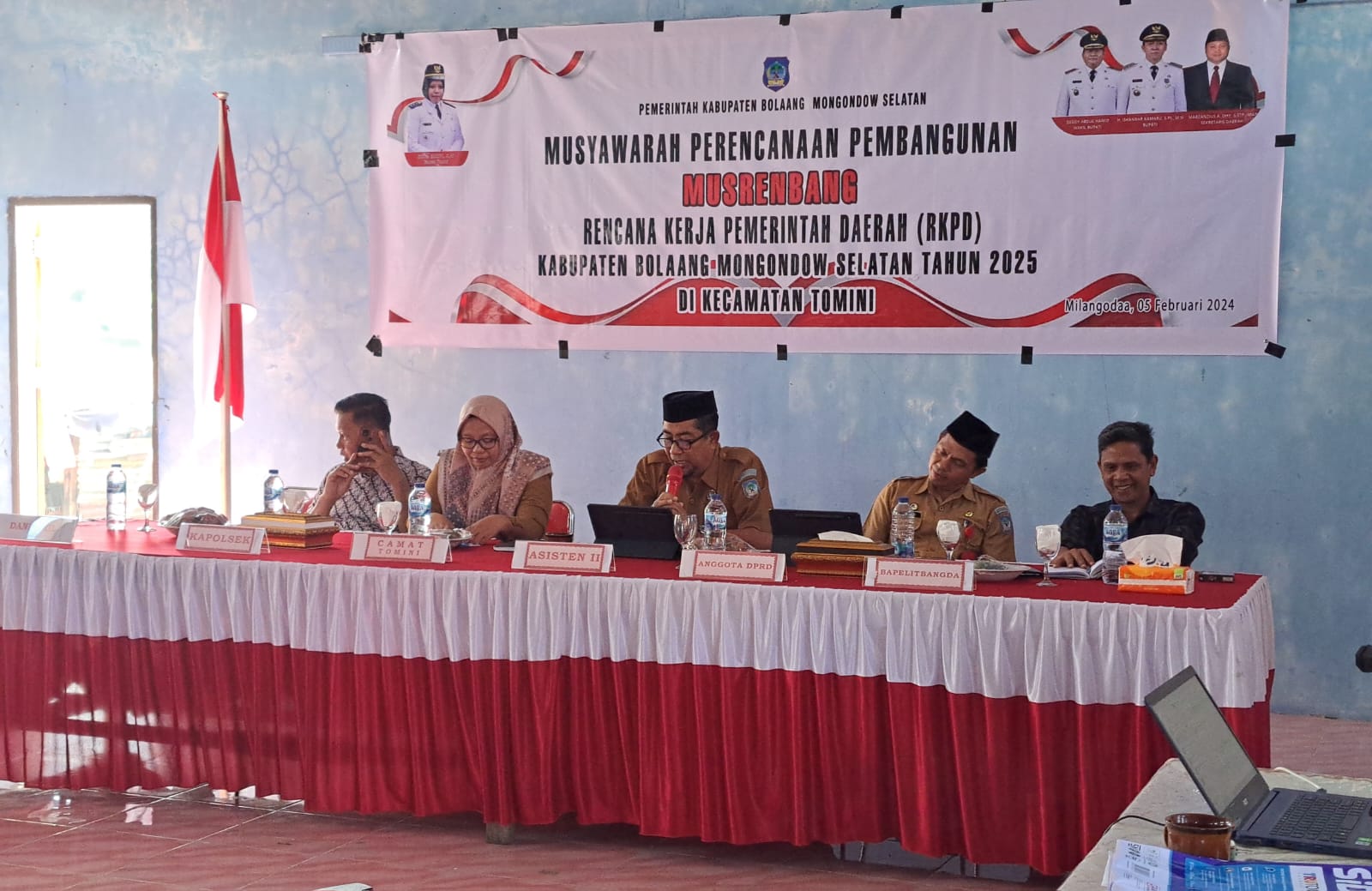 mediatotabun.co, Bolsel — Anggota DPRD Bolaang Mongondow Selatan (Bolsel) Harson Mooduto, menghadiri Musyawarah Rencana Pembangunan (Musrenbang) di Kecamatan Tomini, Senin (5/2).