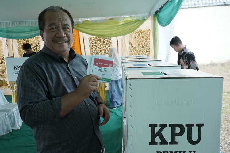 MEDIATOTABUAN, ASAHAN – Wakil Bupati Asahan Taufik Zainal Abidin Siregar, S. Sos, M. Si bersama keluarga ikuti pelaksanaan pencoblosan di TPS 05 Lingkungan II Kelurahan Selawan, Kecamatan Kota Kisaran Timur, Rabu (14/2/2024).