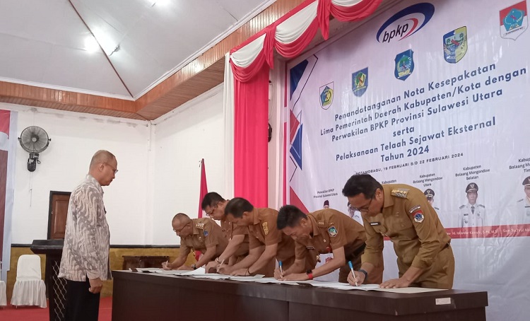 mediatotabuan.co, Kotamobagu – Sebanyak lima (5) daerah se-Bolaang Mongondow Raya (BMR), menandatangani Nota Kesepakatan dengan Perwakilan Badan Pengawasan Keuangan dan Pembangunan (BPKP) Provinsi Sulawesi Utara (Sulut), Senin (19/02/2024).