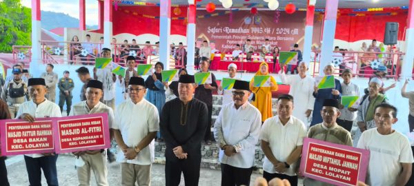 Dalam Safari Ramadhan ini, Wagub Sulut, Drs Steven Kandow didampingi Pj Bupati Bolmong, Ir Limi Mokodompit MM, juga menyerahkan dana hibah dari Pemprov Sulut kepada panitia pembangunan masjid di sejumlah desa di Kabupaten Bolmong.