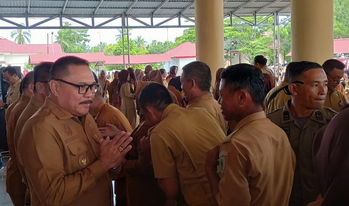 Apel Perdana yang diikuti seluruh Aparatur Sipil Negara (ASN), P3K, THL di lingkungan Pemkab Bolmong ini, dipimpin Penjabat (Pj) Bipati Bolmong, Ir Limi Mokodompit MM.