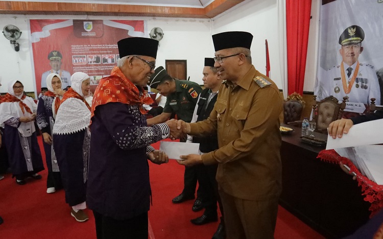 Penyerahan tali kasih untuk membantu biaya transportasi lokal kepada seluruh calon tamu Allah SWT ini, diserahkan langsung Pj Wali Kota Kotamobagu.