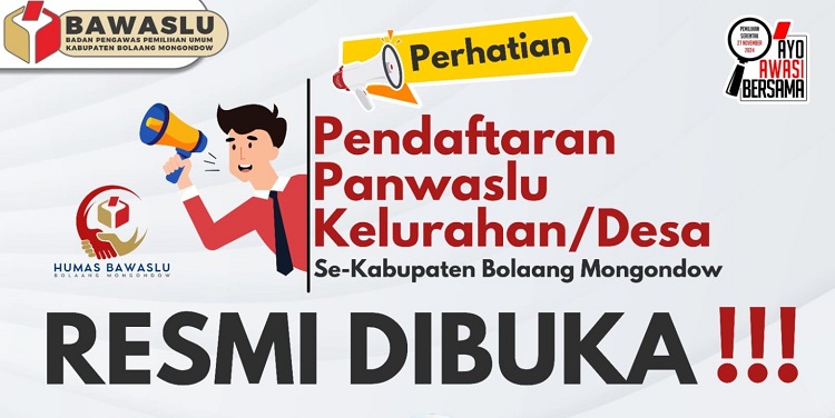 mediatotabuan.co, Bolmong – Badan Pengawas Pemilihan Umum (Bawaslu) Kabupaten Bolaang Mongondow (Bolmong), membuka pemdaftaran Panitia Pengawas Pemilihan Umum (Panwaslu) Kelurahan/Desa (PKD), Jumat (17/05/2024).
