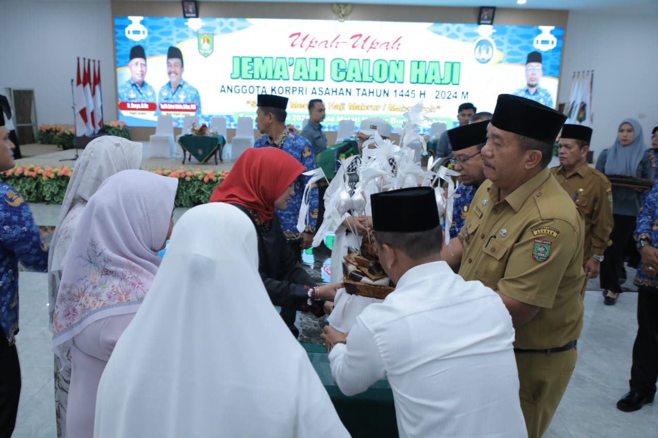 MEDIATOTABUAN.CO – ASAHAN – akil Bupati Asahan Taufik Zainal Abidin, S. Sos, M. Si mengubah – upah 64 orang Jama’ah Calon Haji Anggota Korpri Asahan Tahun 1445 H/2024 M yang terdiri dari 21 Laki-laki dan 43 Perempuan bertempat di Aula Melati Kantor Bupati Asahan, Senin (20/05/2024).