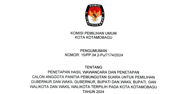 PPS yang berjumlah 99 orang yang tersebar di 33 desa dan kelurahan di empat kecamatan di Kota Kotamobagu ini, berdasarkan pengumuman KPU Kota Kotamobagu Nomor: 15/PP.04.2-Pu/7174/2024, tentang hasil penetapan seleksi calon anggota PPS untuk pemilihan Gubernur dan Wakil Gubernur Sulut serta Wali Kota dan Wakil Wali Kota Kotamobagu.