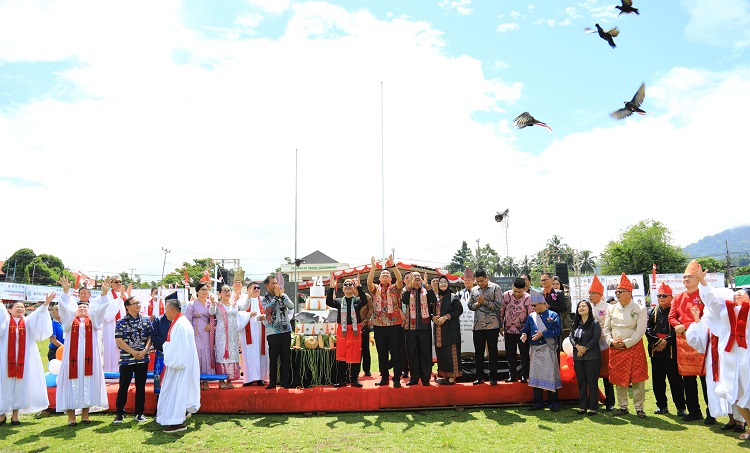 Kegiatan yang dipusatkan di Alun – Alun Boki Hontinimbang ini, juga dihadiri Bupati Bolaang Mongondow Selatan, Iskandar Kamaru SPt MSi; Pj Bupati Bolaang Mongondow, dr Jusnan Mokoginta MARS; Ketua BPS GMIMBM, Pdt Fekky Kamasaan MTh; Ketua DPRD Kotamobagu, Meiddy Makalalag ST; Ketua DPRD Bolaang Mongondow, Welty Komaling SE MM; Kapolres Kotamobagu, AKBP Dasveri Abdi SIK; Perwakilan Forkopimda, Kepala Kantor Kemenag Kotamobagu, Jamaluddin Lamato SPdI MPd.